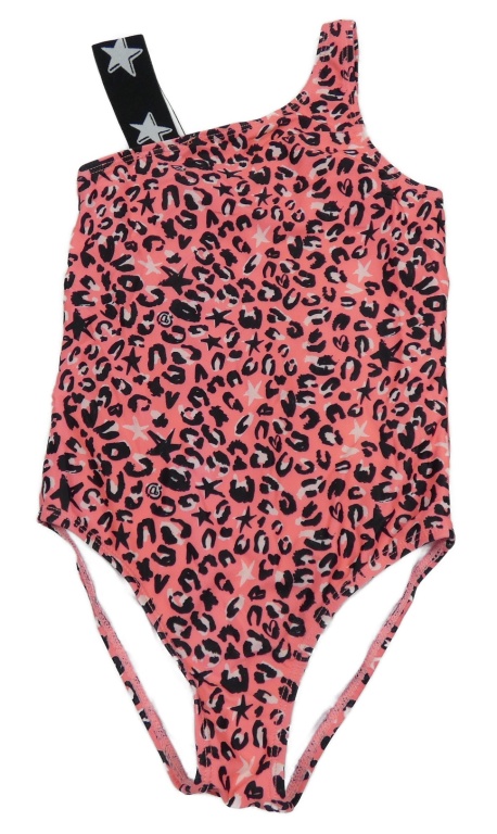 Růžovo-černé vzorované jednodílné leopardí plavky
