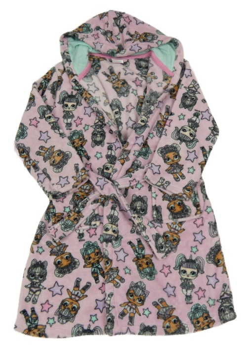 Světlerůžový chlupatý župan s potiskem LOL Suprise George