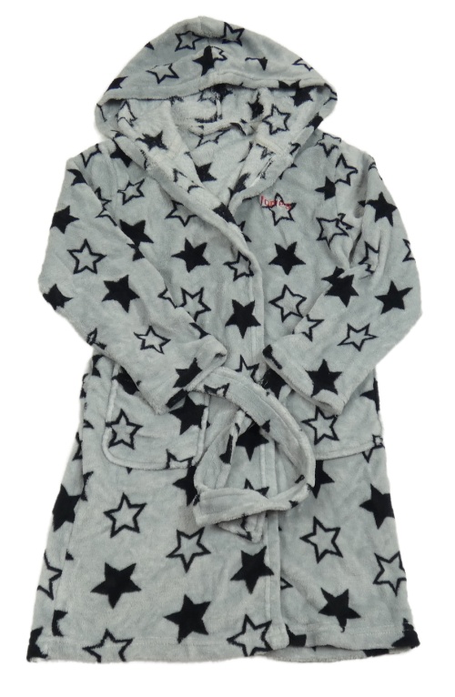 Šedo-černý plyšový župan s hvězdičkami a kapucí