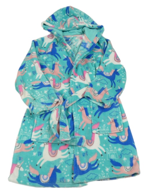 Tyrkysový chlupatý župan s jednorožci a kapucí George