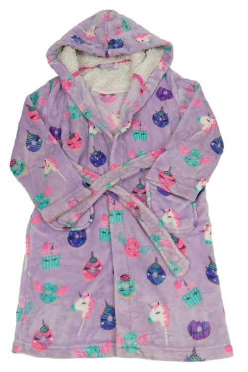 Lila plyšový župan s donuty a jednorožci a kapucí Bluezoo