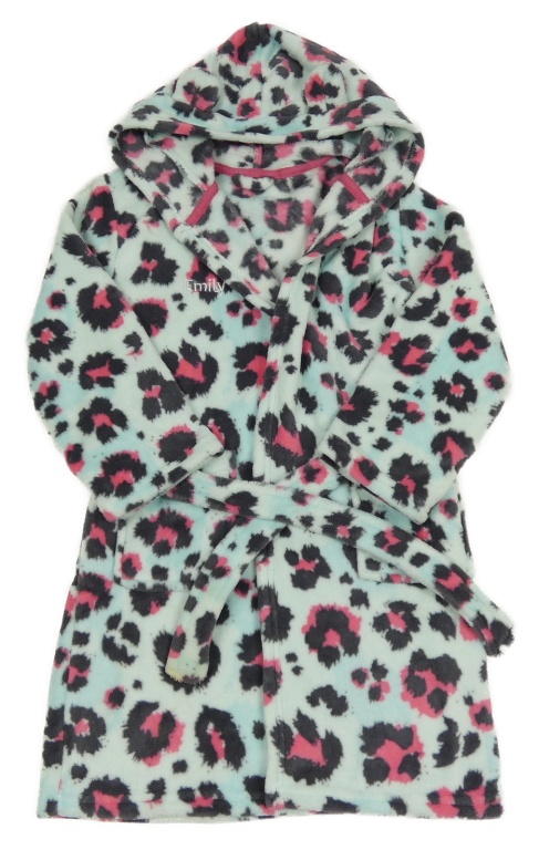 Tyrkysový vzorovaný chlupatý župan s kapucí