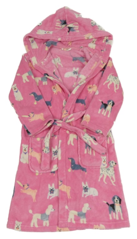 Růžový chlupatý župan s pejsky a kapucí M&S