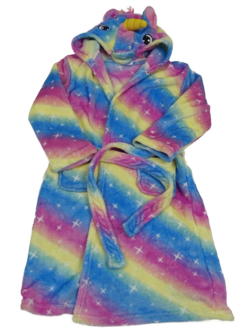Barevný duhový plyšový župan s hvězdičkami a kapucí - jednorožec