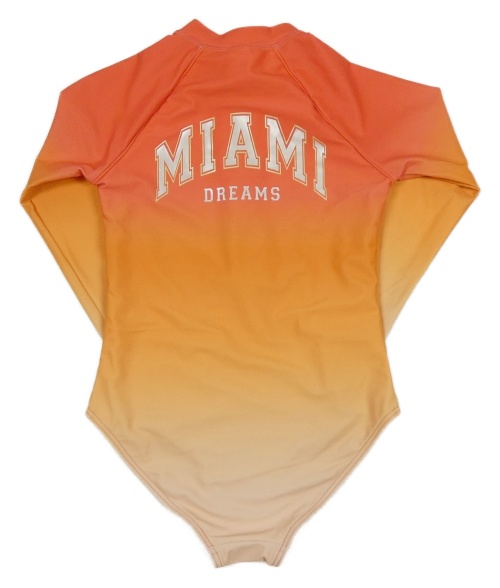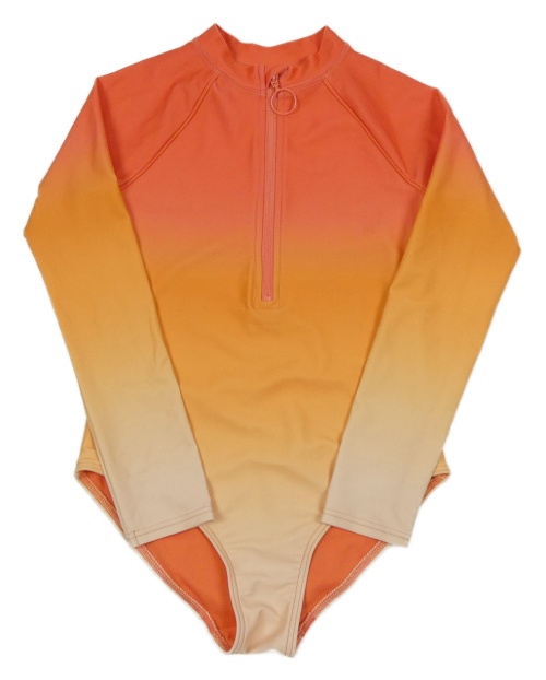 Jahodovo-oranžovo-žluto-světlebroskvové plavky s UV ochranou a nápisy M&S