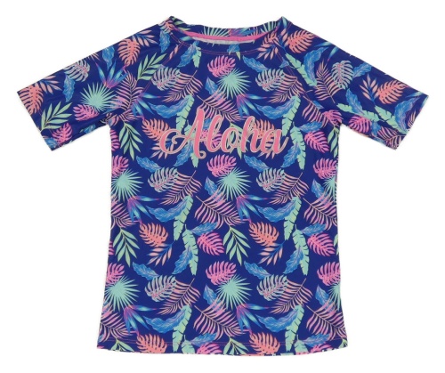 Tmavomodro-růžovo-tyrkysové UV tričko s listy a nápisem St. Bernard
