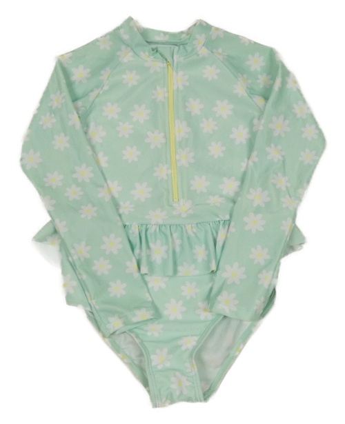 Mentolové květované jednodílné plavky s volánkem s UV ochranou