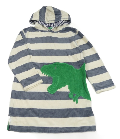 Šedo-smetanový pruhovaný froté župan s dinosaurem a kapucí Mini Boden