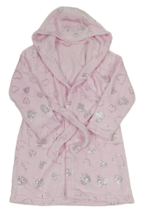 Světlerůžový chlupatý župan se srdíčky a kapucí Matalan