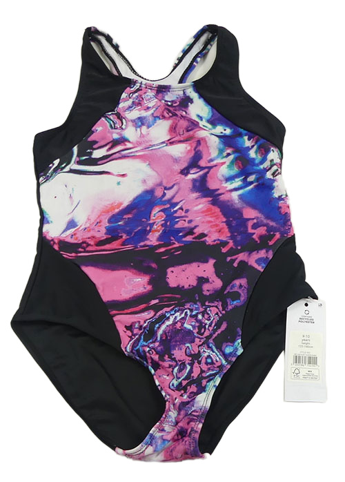 Nové - černo-růžovo-safírovo-bílé batikované jednodílné plavky George