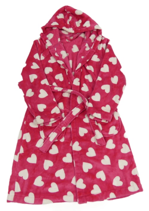 Malinový plyšový župan s bílými srdíčky a kapucí George