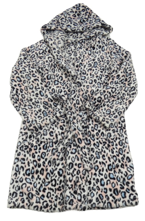 Bílo-růžovo-černý chlupatý župan s leopardím vzorem a kapucí V by Very