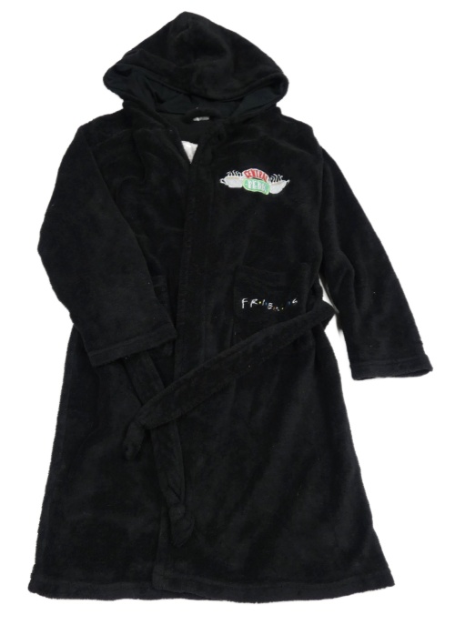 Černý plyšový župan s výšivkou a kapucí - Přátelé
