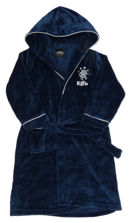 Tmavomodrý plyšový župan s kapucí