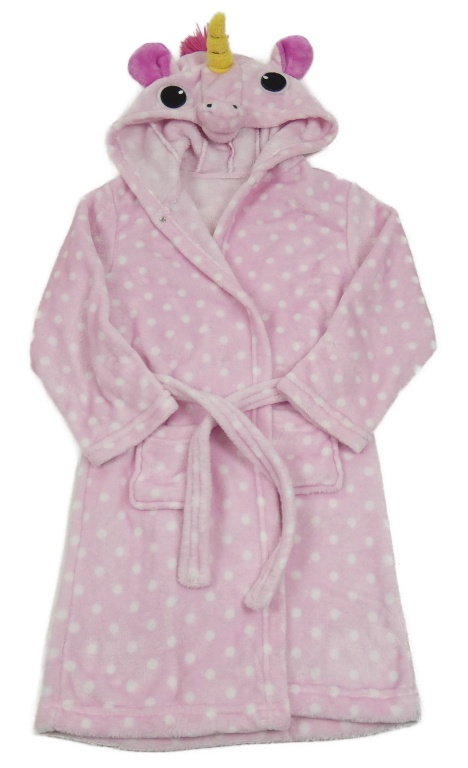 Světlerůžovo-bílý puntíkatý plyšový župan s kapucí - Jednorožec