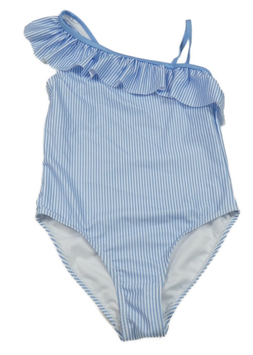 Bílo-modré pruhované jednodílné plavky s volánkem Page one young