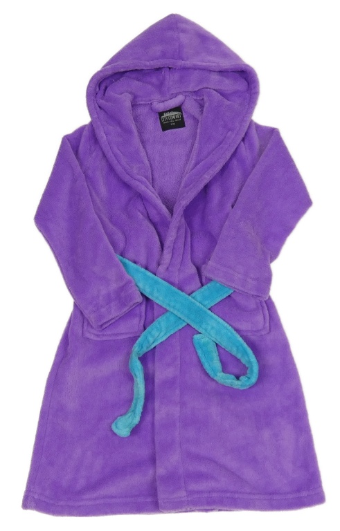 Fialový chlupatý župan s páskem a kapucí