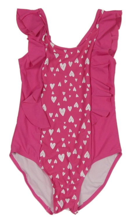 Růžové jednodílné plavky se srdíčky a volánky Yigga