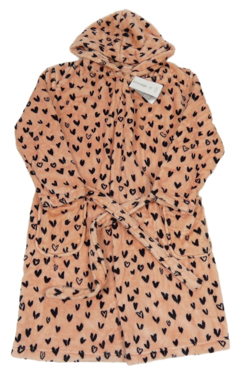 Nové - Lososovo-černý chlupatý župan se srdíčky a kapucí George