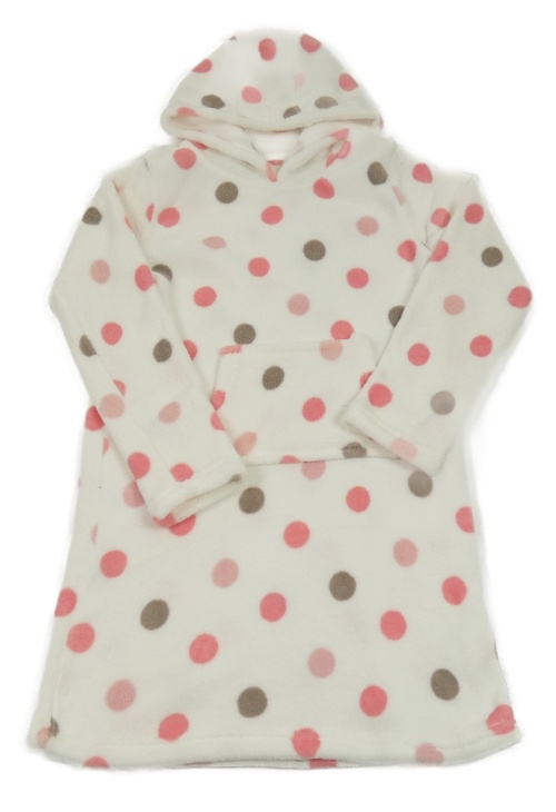 Bílé chlupaté županové šaty s puntíky a kapucí Matalan