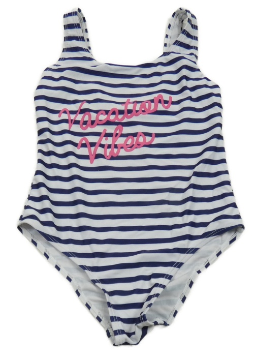 Tmavomodro-bílé pruhované jednodílné plavky s nápisem Primark
