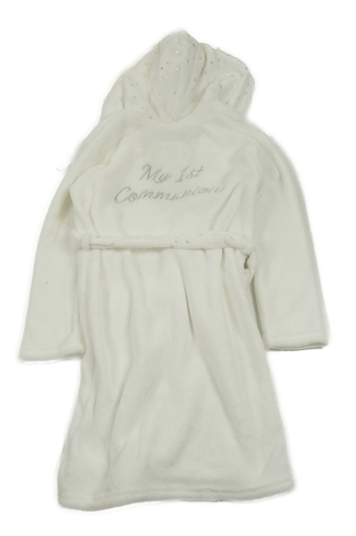 Nové - bílý plyšový župan s nápisem a kapucí Primark