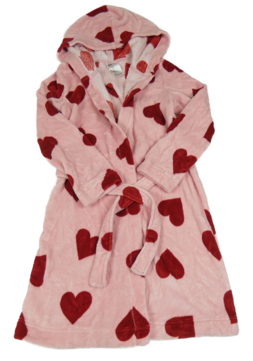 Světlerůžový chlupatý župan se srdíčky a kapucí H&M