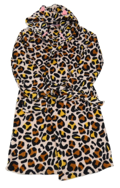 Světlerůžovo-černo-hnědo-tmavožlutý vzorovaný plyšový župan s kapucí HEMA