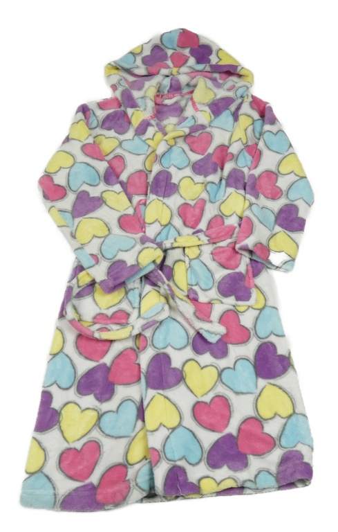 Bílo-barevný plyšový župan se srdíčky a kapucí BHS