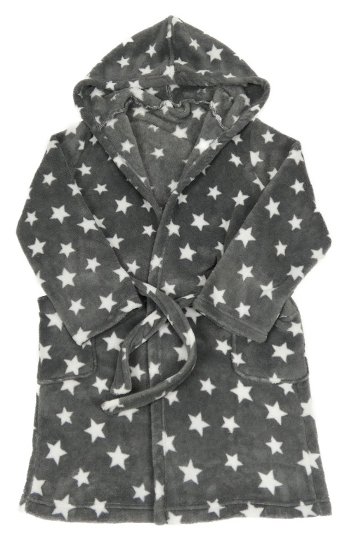 Šedý chlupatý župan s hvězdami a kapucí TCM