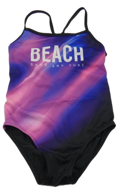 Černo-růžovo-modré jednodílné plavky s nápsem