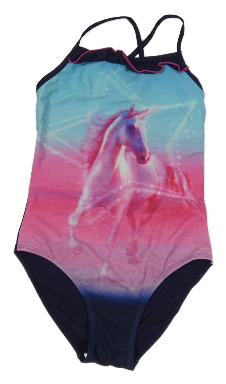 Modro-růžovo-tmavomodré jednodílné plavky s jednorožcem Yigga