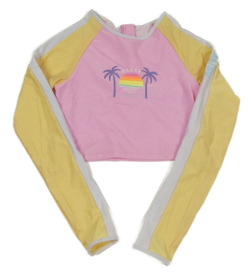 Růžovo-žluté UV crop triko s palmami Primark
