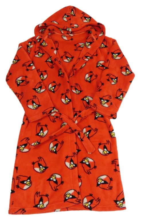 Červený chlupatý župan s Angry Birds a kapucí Next