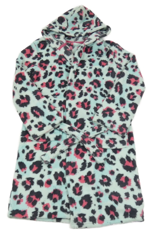 Pomněnkovo-světlemodro-černošedo-tmavorůžový vzorovaný plyšový župan s kapucí s oušky