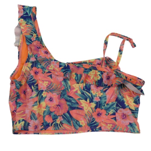 Tmavomodro-zeleno-růžová květovaná plavková lambáda s volánkem