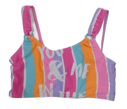 Bílo-barevná pruhovaná plavková lambáda s nápisem