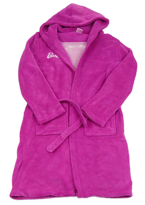 Fuchsiový plyšový župan s Barbie a kapucí