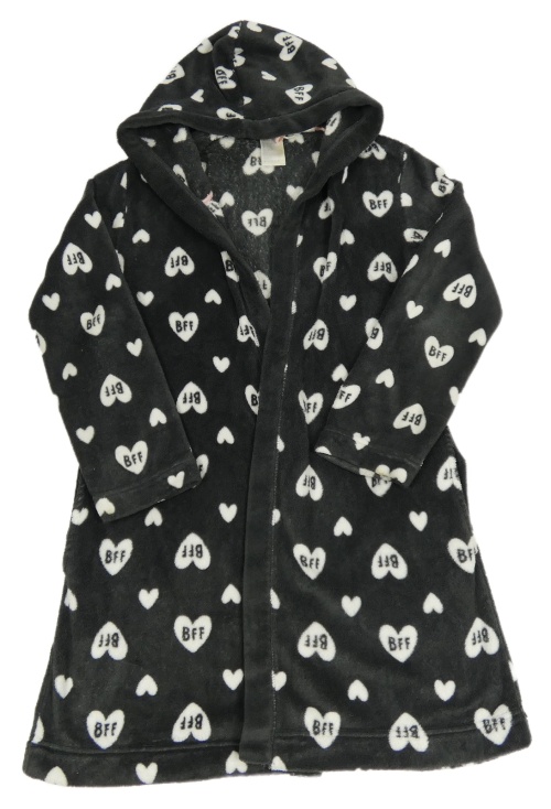 Antracitový plyšový župan se srdíčky a nápisy a kapucí H&M