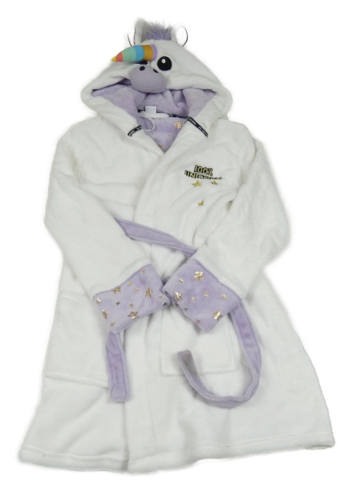 Bílo-fialový chlupatý župan-jednorožec