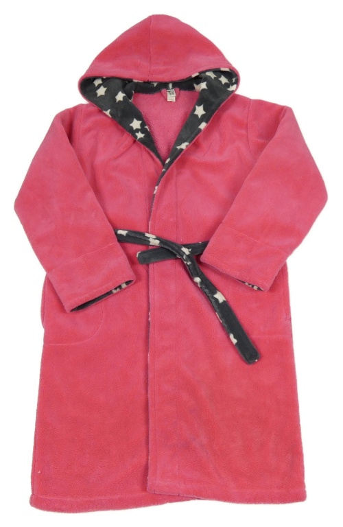 Růžovo-šedý plyšový župan s hvězdami a kapucí C&A