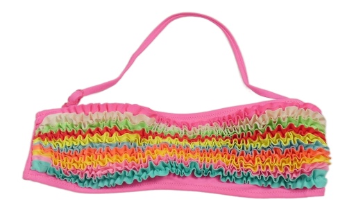 Neonově růžová plavková podprsenka s volánky