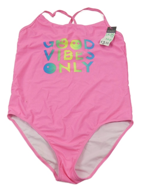 Nové - Neonově růžové jednodílné plavky s nápisem se smajlíky Primark