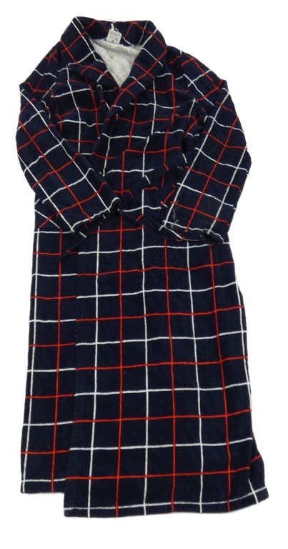 Tmavomodro-bílo-červený kostkovaný župan