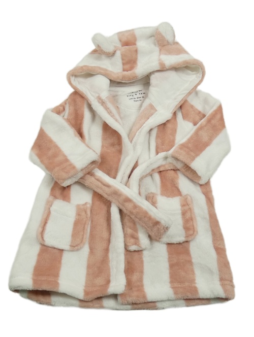 Starorůžovo-bílý pruhovaný plyšový župan s kapucí s oušky Tu