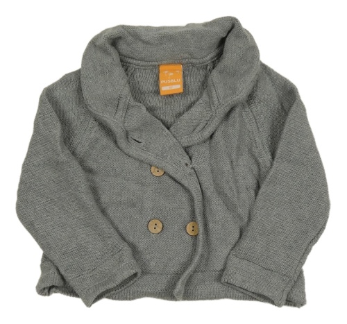 Šedý melírovaný propínací svetr s límečkem PUSBLU
