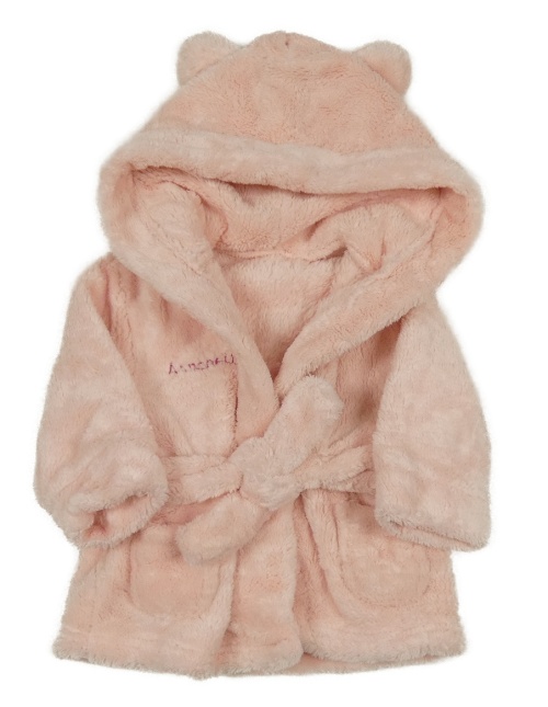 Světlerůžový chlupatý župan s nápisem a kapucí