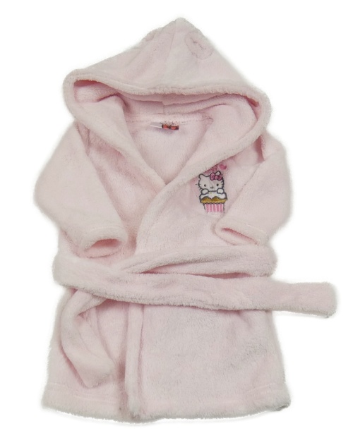 Světlerůžový chlupatý župan s Kitty a kapucí