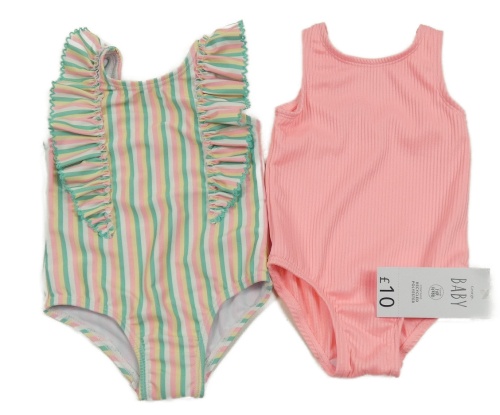 Nové - 2 set plavky - růžové + bílo-zeleno-růžové pruhované plavky