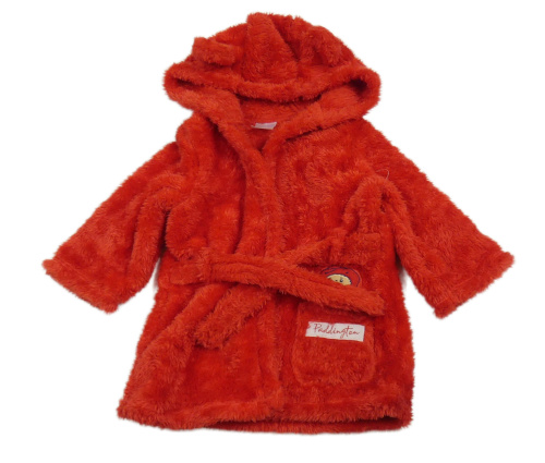 Červený chlupatý župan s Paddingtonem a kapucí
